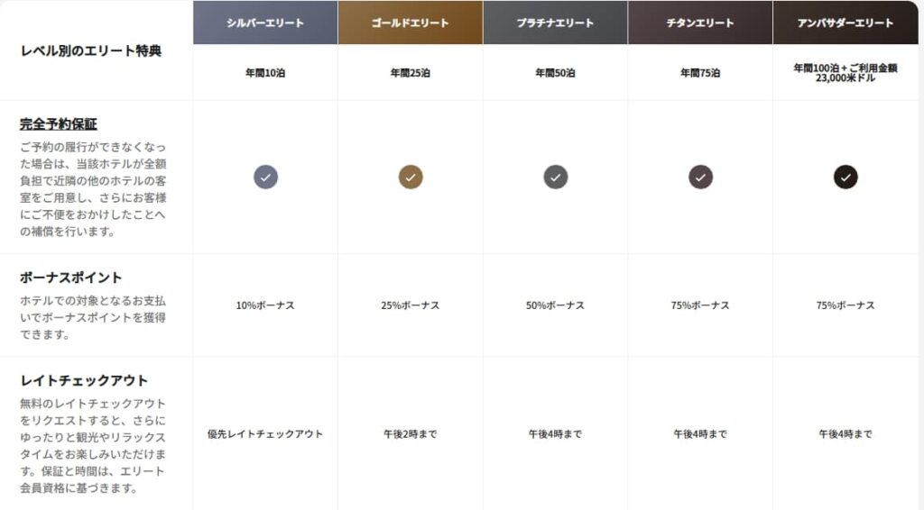 | エリートナイトクレジット付与 | 5泊 | 15泊 |