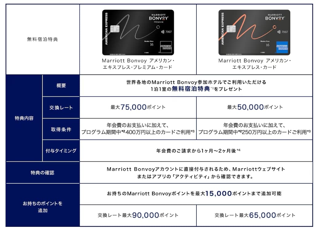 | 特典 | マリオットアメックスカード | マリオットアメックスプレミアムカード |
