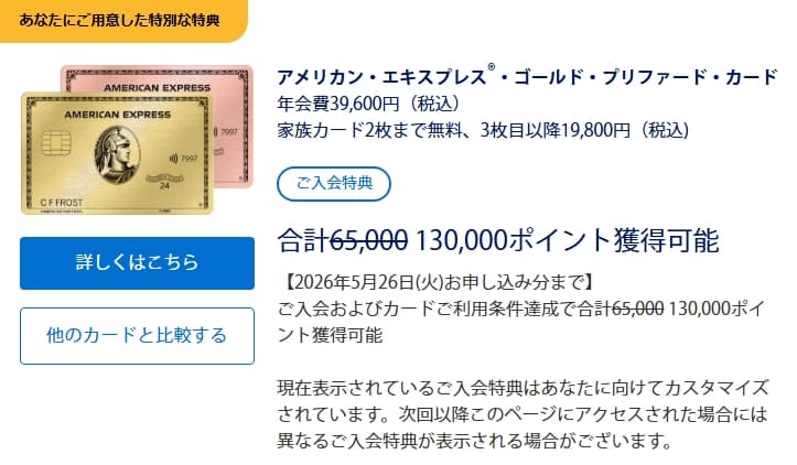 現在実施中の入会キャンペーンも含めて、アメックスゴールドプリファードで新しいライフスタイルを取り入れてみるのも良いかもしれません。