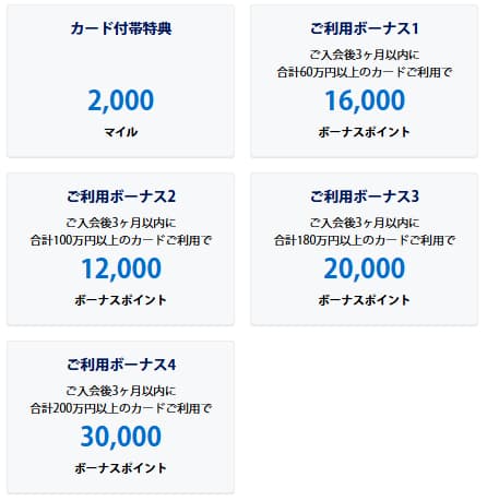 入会3か月以内のカード利用が200万円以上:30,000マイル