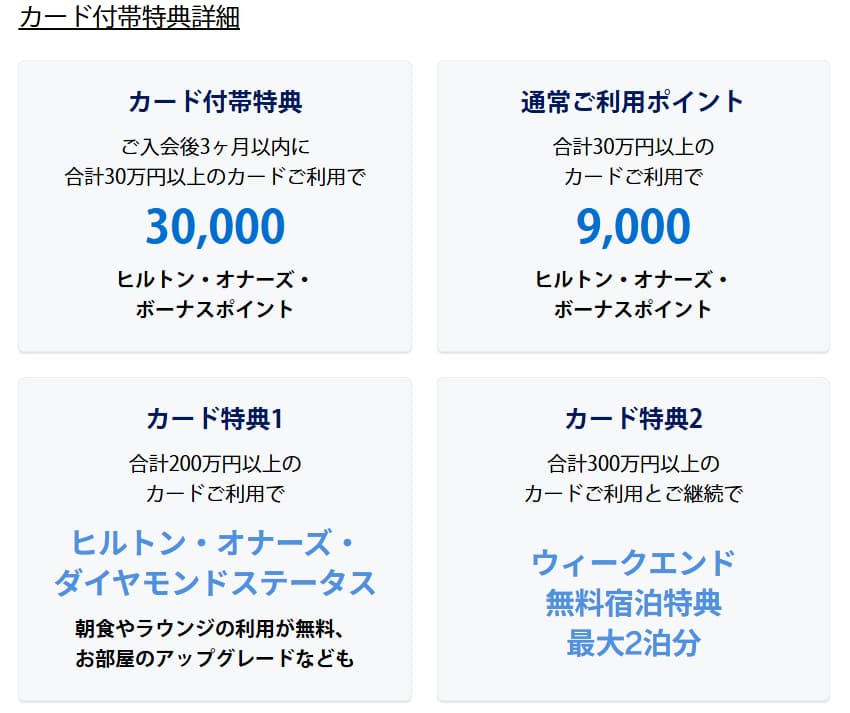 ヒルトンステータス | ゴールド | ゴールド(年間200万円利用でダイヤモンド) |