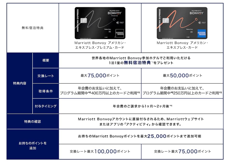 | 特典 | マリオットアメックスカード | マリオットアメックスプレミアムカード |