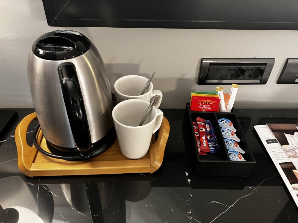セルフサービスで頂けるドリンクは、インスタントコーヒー、ティーバッグは紅茶、カモミールティー、緑茶です。