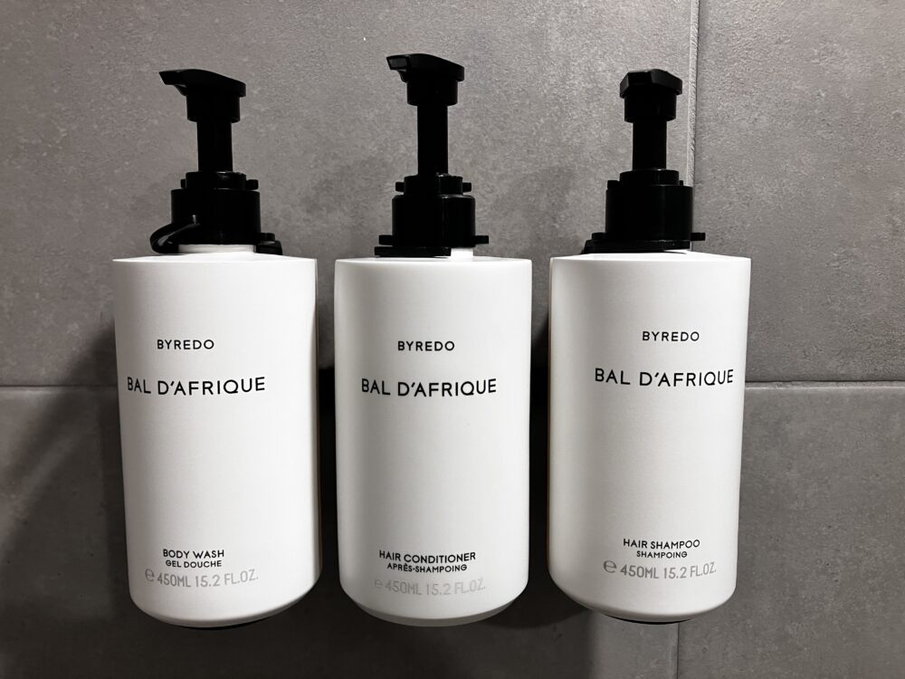 バスアメニティはスカンジナビア・ミニマリズムを謳うスウェーデンブランドの「BYREDO」。中性的で、男女共に使いやすい香りのセレクトはさすがです。