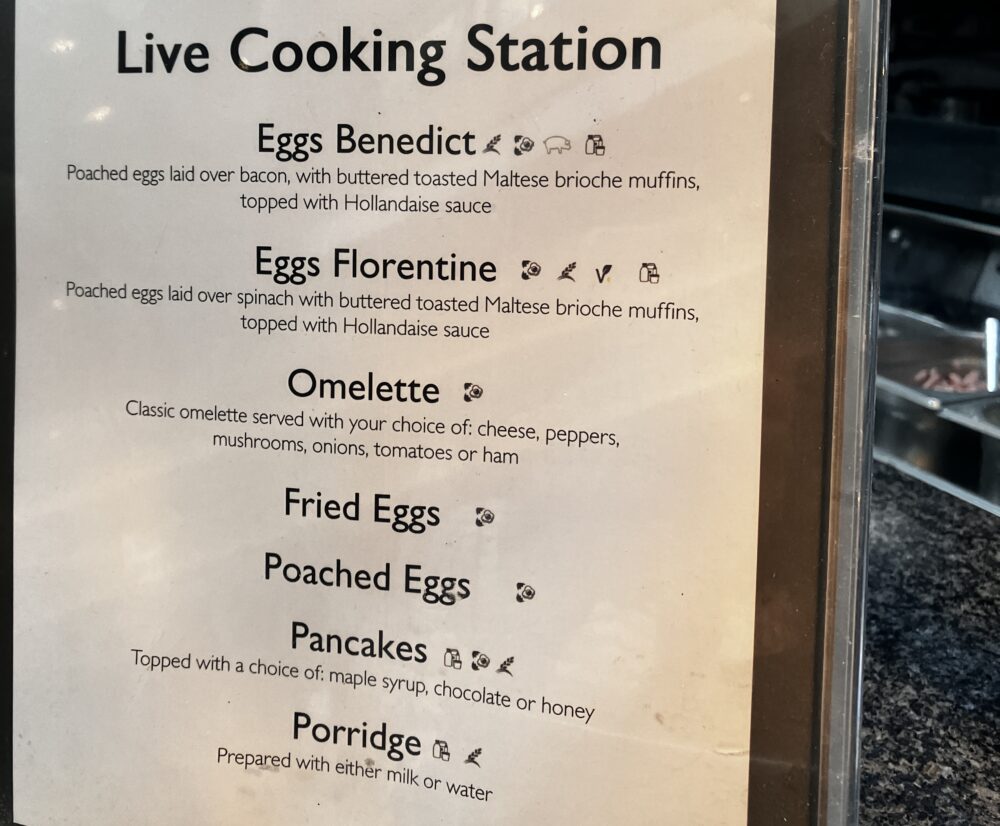 卵を使った温かいお料理は、好みのメニューを選んで作って頂けます。初日は「エッグ フロレンティン」をオーダー。