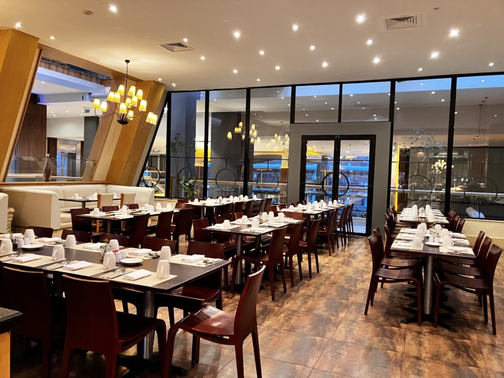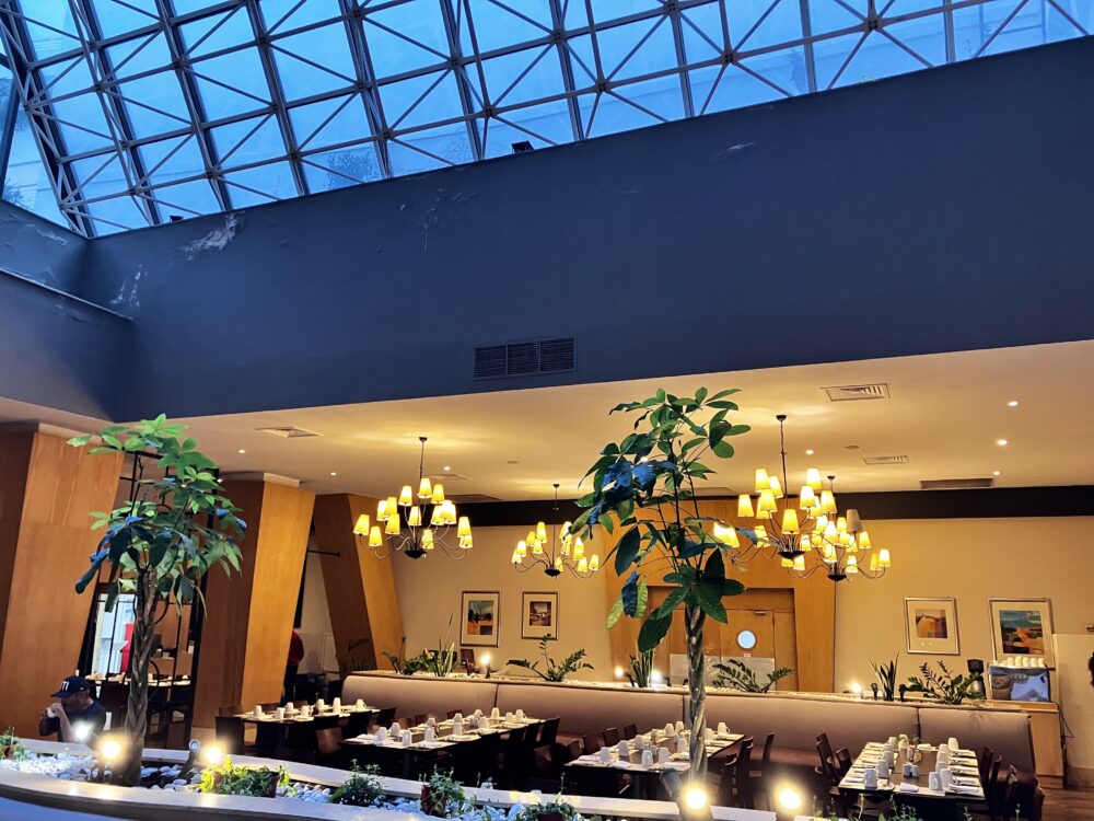 横に長いお部屋で、ロビーが見下ろせる窓際席が、私のお気に入り。反対側のガラス張りの吹き抜け天井席も自然光が降り注ぎ、明るくて素敵でした。
