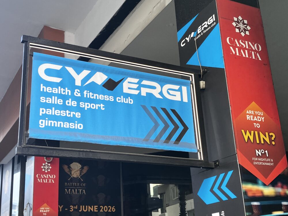ホテル施設のなかで、個人的に一番驚いたのが、フィットネスセンターの規模でした。今まで私が見て来たホテル併設のジム施設とは、大きさも専門性も段違いに高い印象を受けました。それもそのはず。ホテル宿泊者が中庭経由でアクセスする先は、「CYNERGI(サイネルギ)ヘルス&フィットネスクラブ」。マルタ最大級の施設を誇るスポーツジムです。