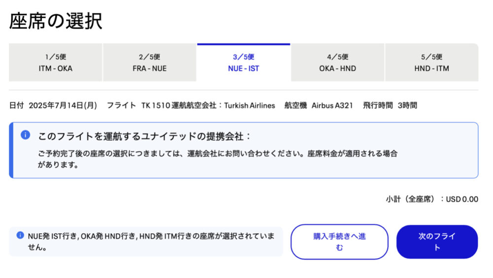 フライト2:フランクフルト → イスタンブール(ここが無料)